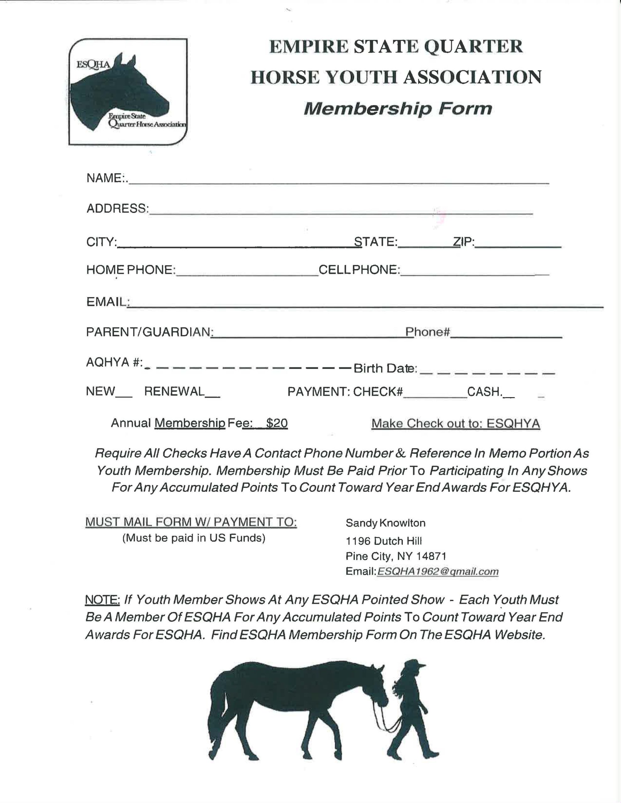 Below you’ll find printable forms for membership, show entries, program participation, and more. Download what you need to join us in promoting excellence, sportsmanship, and the love of the Quarter Horse throughout New York.